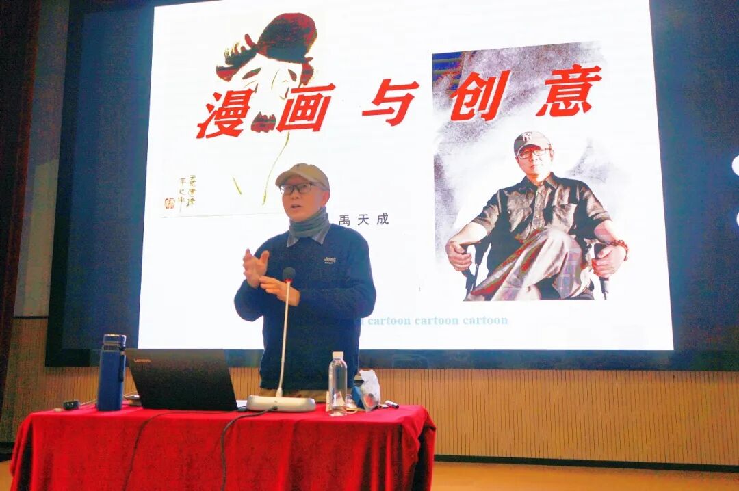 讲座伊始,禹天成先生以“漫画与创意”为主题,用亲切幽默的语言拉近了与同学们的距离。他从漫画的基本技法讲起,深入浅出地解析了线条的运用、形象的夸张以及情感的表达。孩子们听得津津有味,不时低头记录,眼中闪烁着对漫画艺术的好奇与向往。