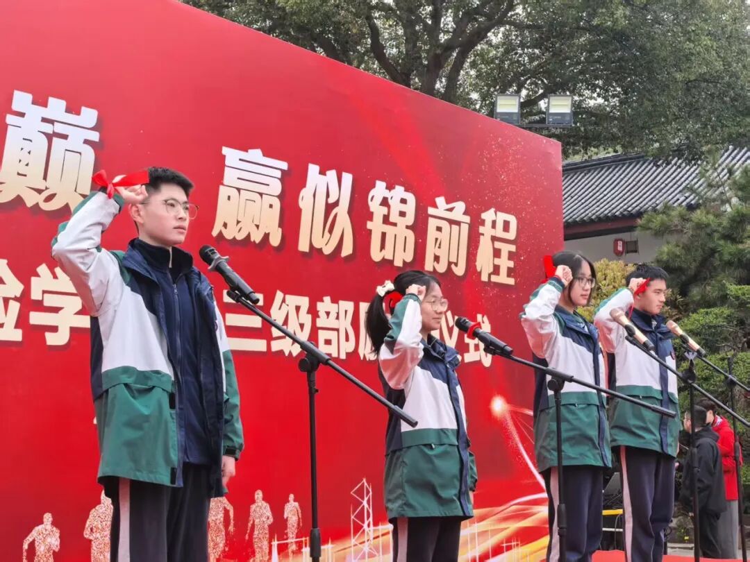 全体学子高举右拳,庄严宣誓——那整齐而响亮的声音,回荡在穹窿之巅,是青春最有力的呐喊。