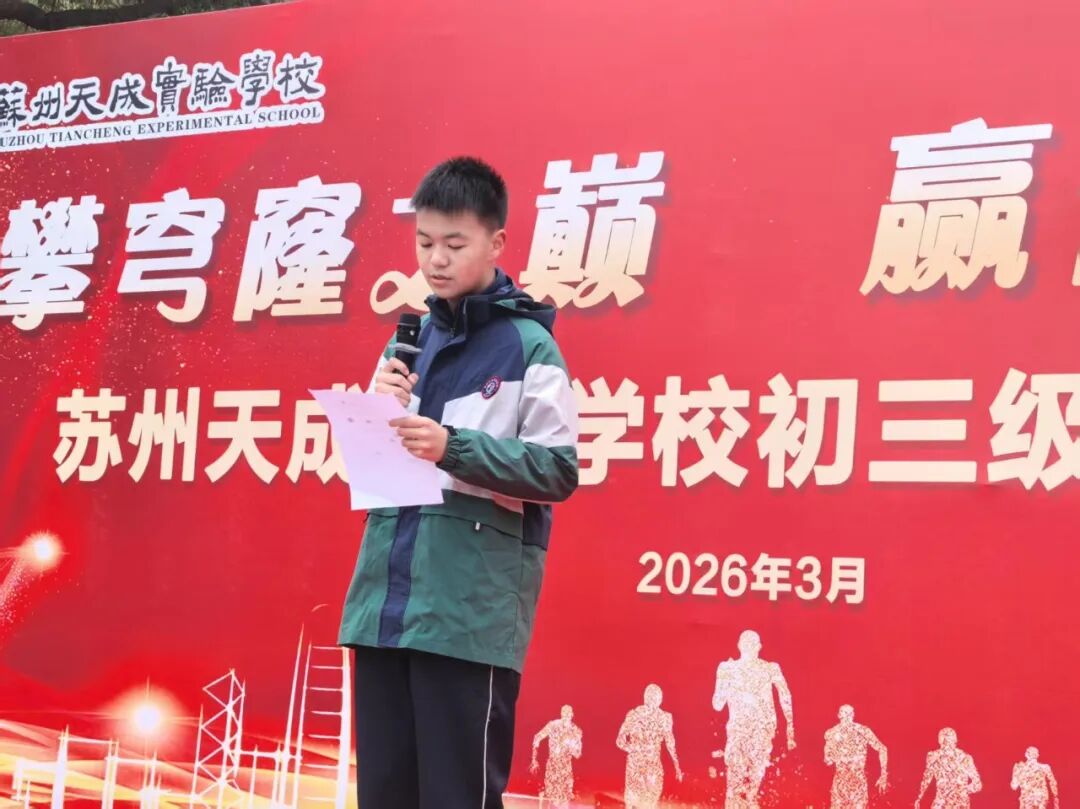 学生代表陈立轩号召全体同学珍惜时光、勇敢追梦,用行动书写青春篇章。家长代表张雨泽家长则以自己参加马拉松的经历,鼓励同学们相信自己,坚持到底。