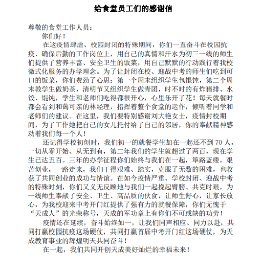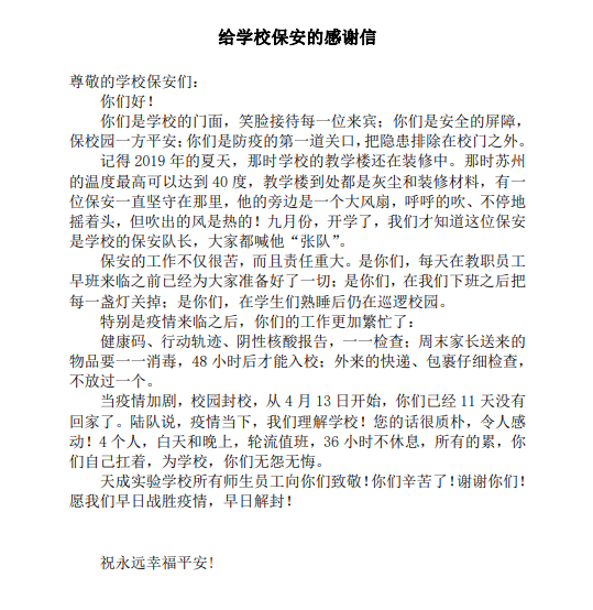 校园封闭管理后,后勤团队默默地为在校教职工和初三学生做好保障服务和支持工作,确保大家有温暖而舒适的生活环境。为表达对后勤人员辛苦付出的感恩,学校工会精心准备了慰问礼品和暖心的感谢信。希望我们齐心协力,共同打赢校园抗疫之战,共同迎接美好的明天!