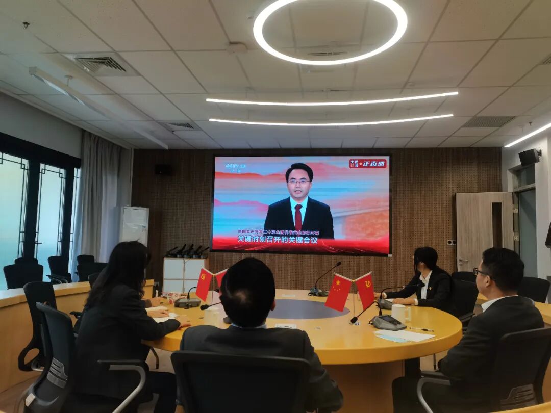 2022年10月16日上午,苏州市吴中区天成实验学校党支部书记马培林、副书记王勇、党支部委员高扬、庄文娟、赵丹阳、韩风霞,一同在学校行政楼二楼模联会议室观看中国共产党第二十次全国代表大会现场直播。